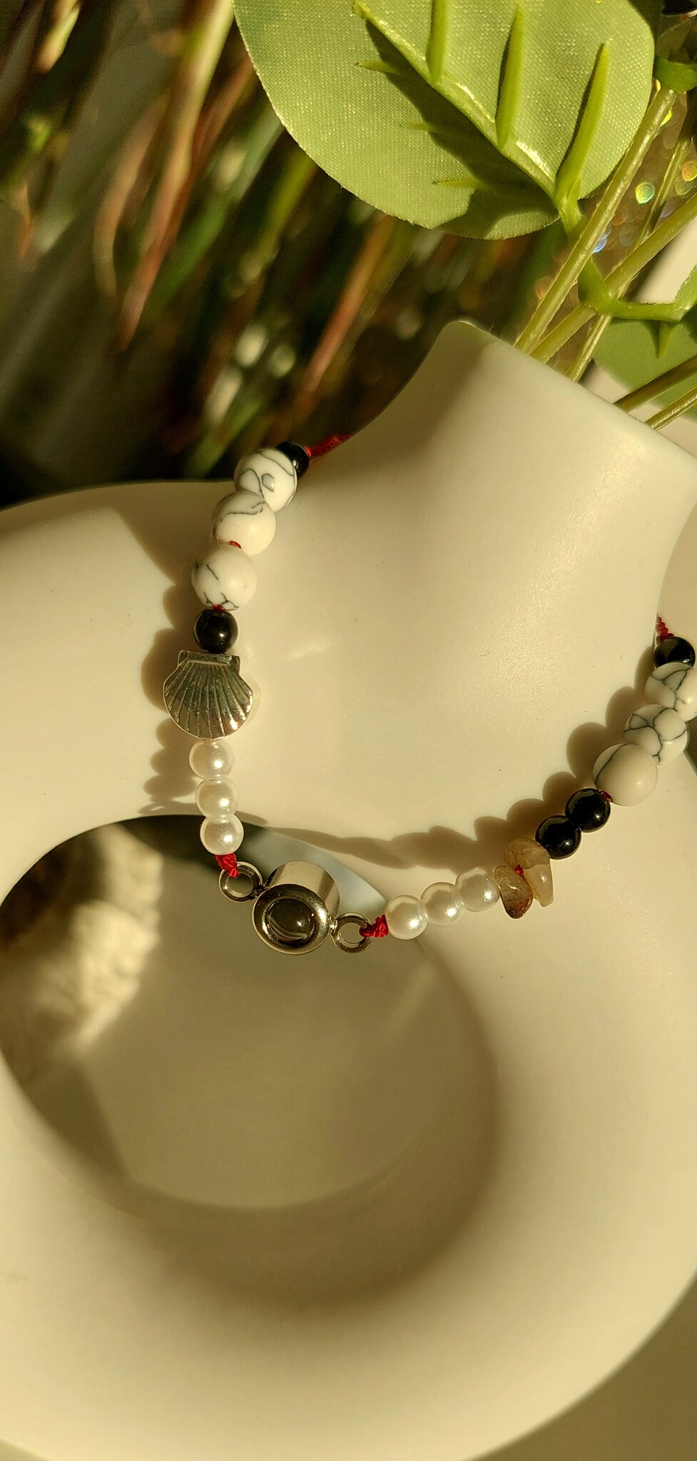 Ta niezwykła bransoletka to połączenie mocy natury i nowoczesnej technologii. Muszelka z Hematytu – kamienia o głębokim, metalicznym połysku, który nie tylko zachwyca wyglądem, ale także działa ochronnie i dodaje pewności siebie.